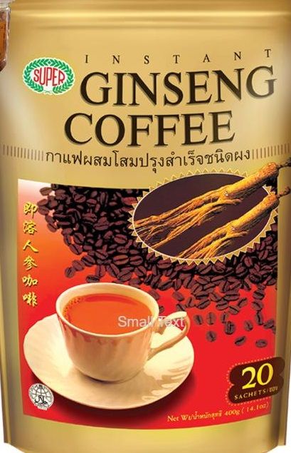 Coffee with Ginseng is know for its anti-aging properties. Ginseng coffee reduces stress and fatigue. It also called Ginseng plus or, Healthy Coffee. Ginseng coffee is a balanced mixture of East & West. Super ginseng coffee is made of Ginseng, Sugar, creamer, and instant coffee. It is an instant ready to drink healthy coffee for your enriched day. Super Ginseng coffee is available in pack of 20 sachet of 20 grams each ie, 400 gms per pack and use for 20 serving Ginseng plus drink.